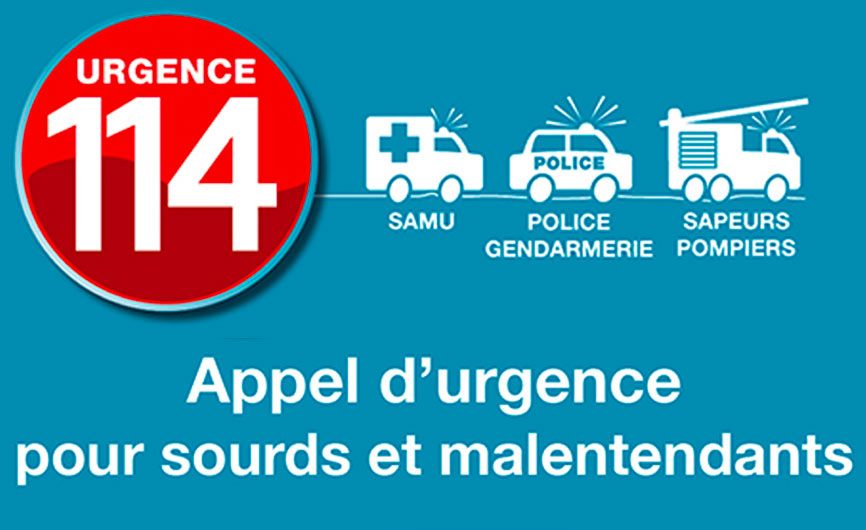 Sourds/Malentendats – 114Numéro unique, national, gratuit est accessible par visiophonie, tchat, SMS ou fax, 24H/24, 7J/7.